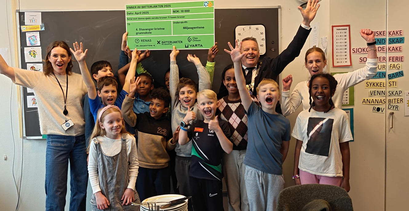 Den siste tiden har batteritypene endret seg mye. Særlig litiumbatterier finnes nå i mange varianter, og de kan utgjøre en stor brannfare hvis de håndteres feil. Som produsentansvarsselskap vil vi derfor lære bort hvordan batterier skal oppbevares, håndteres og leveres til gjenvinning på riktig måte. Derfor endret vi Batterijakten i 2025. Nå samler barna inn langt færre batterier per person. I stedet samler klassen inn akkurat nok batterier til å få diplom, og lager blant annet “batterikunst”.